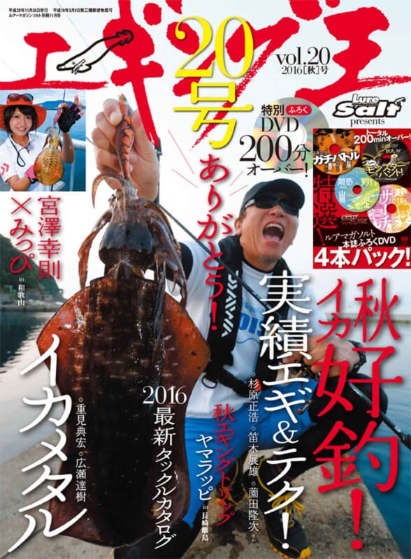 ヤマラッピさんこと、山田ヒロヒトさんが表紙! 年2回、春と秋にリリースしているルアーマガジンソルトの別冊、エギング王も20号となりました。つまり10年!