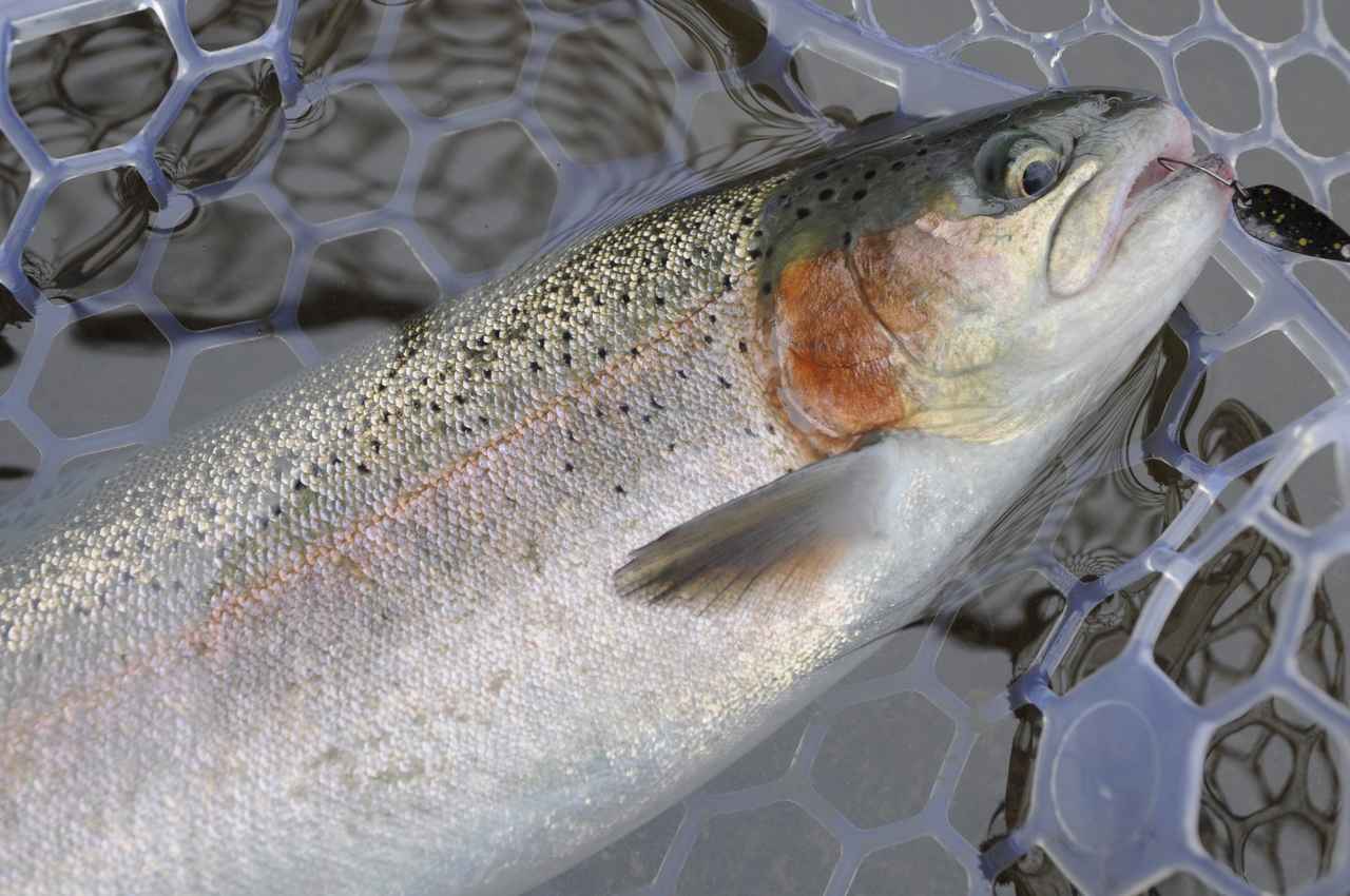 大型のトラウトは、やっぱり大型ルアーも効く! ムック企画『鱒王BATTLE』でも、70〜90ミリのプラグで良型マス属が連発していた。となると、バスタックル激ハマりなパターンがあるかも! なんでもジョイクロなどビッグベイトは、隠れご当地ヒットルアーだとか…。バーブレスフックで、挑めでかマス!