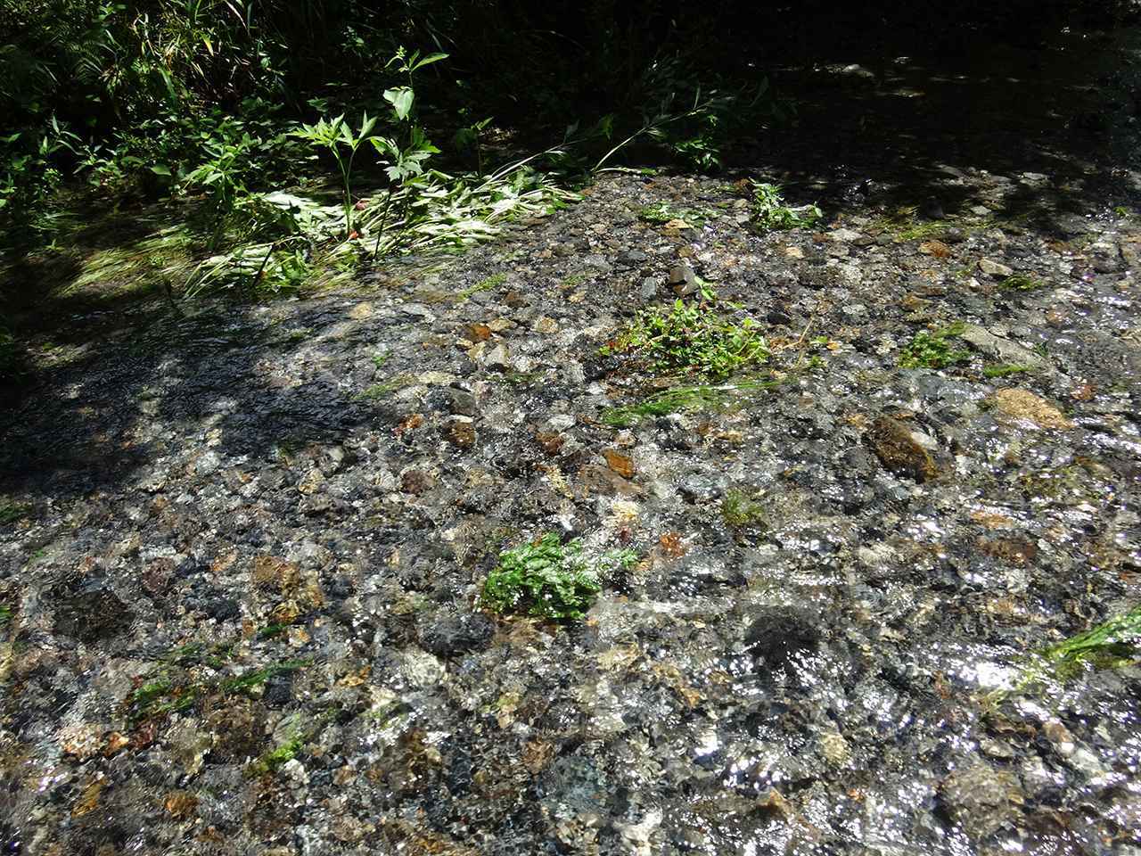 次に入ったエリアもクリアながら増水。本来は河原に生えているはずの植物が水没しているので、「轟々と砂利を流してしまうほど増えてはいないけど浸るまでは増えた」というように、周囲から状況を推測します。