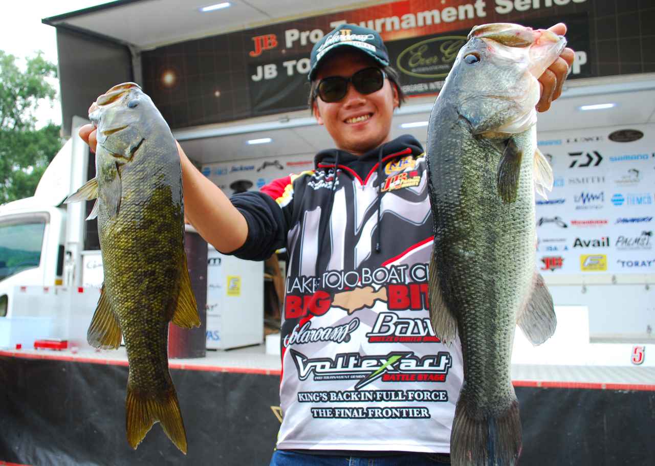 減水とターンオーバー、さらには追い打ちをかけるように本戦直前に訪れた台風21号による濁りの全域拡散…。9月7日(金)から9日(日)の3日間、国内有数のスモールマウスレイク・桧原湖(福島県)を舞台に開催されたJBトップ50第4戦『エバーグリーンインターナショナルCUP』は、例年になくローウエイトスコアで進行した。コンディションの悪化に加え、日に日にタフさを極めていった最終日、驚くべき事件が起きた。予選暫定上位陣の多くが決め手に欠くなかで、ジャッカルの隠し球・西川慧(にしかわ・さとし)選手が終了間際の30分で2尾のキロアップをキャッチしてジャンプアップに成功。5尾3865グラムの単日首位ウエイトで、暫定4位から見事に大逆転優勝を果たした!