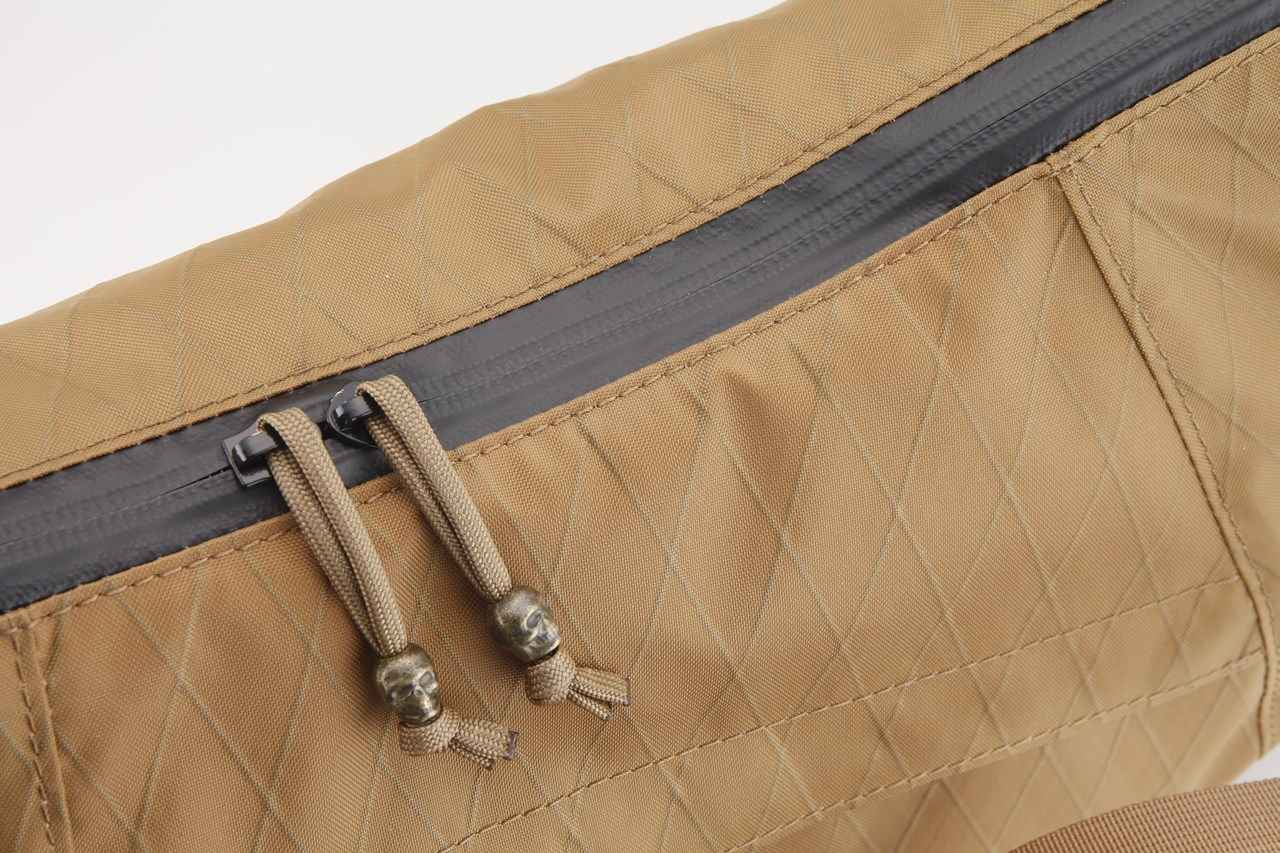 ルアマガのコラボモデルには優れた防水性能と耐久性を兼ね備えたX-PACという素材を採用し、雨天時の岸釣りも問題なく使用できます。メイン開口部はYKKの止水ファスナーで、水滴をシャットアウト。