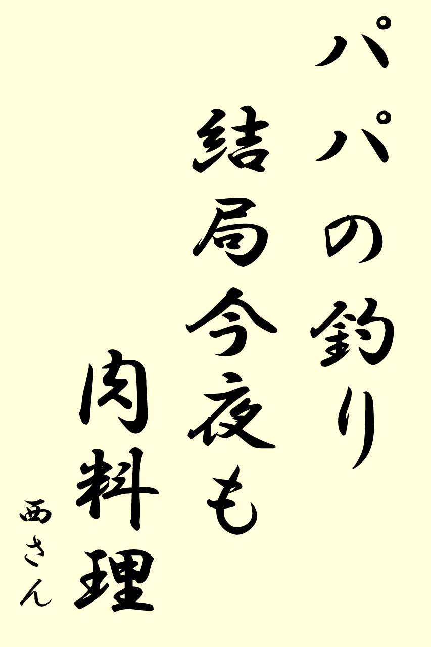 by妻。とのことでした。中学生の娘さんが釣りに行くとサバやアジといった夕食の材料を確保してくれるそうです。パパの威厳は一体…。でも自分は知ってますよ! 西さんは娘さんを喜ばせるために釣らないんですよね!?