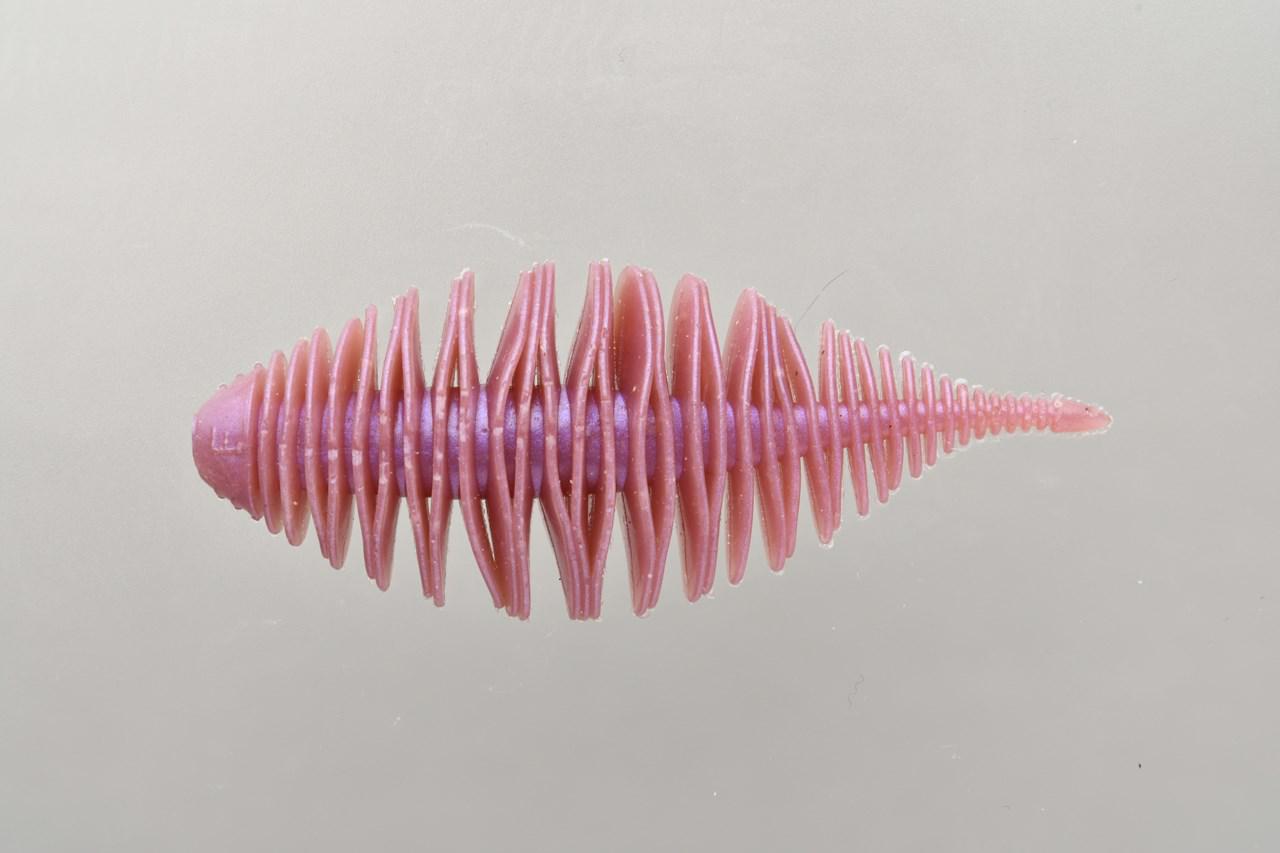 もうひとつのオリカラ「LMサクラシルバー」はどことなく生き物らしさを感じさせる淡いピンクをのベースに、シルバーラメを散りばめました。弱った小魚が水底へ沈んでいくイメージで使ってみてはいかがでしょうか。もちろんジークラックオリジナルのS.A.Fマテリアルを採用。無数のリブとあいまって、明確なバイトをもたらします。