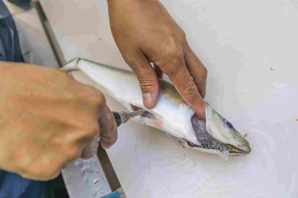 津本式の開発者ご本人の津本さんは、日々、魚を処理しているプロです。プロだからこそ、そして理解しつくしてるからこそ、ふと、不必要な部分をスキップしたり、時短したり、本道と違う方法を取り入れたり自由自在です。