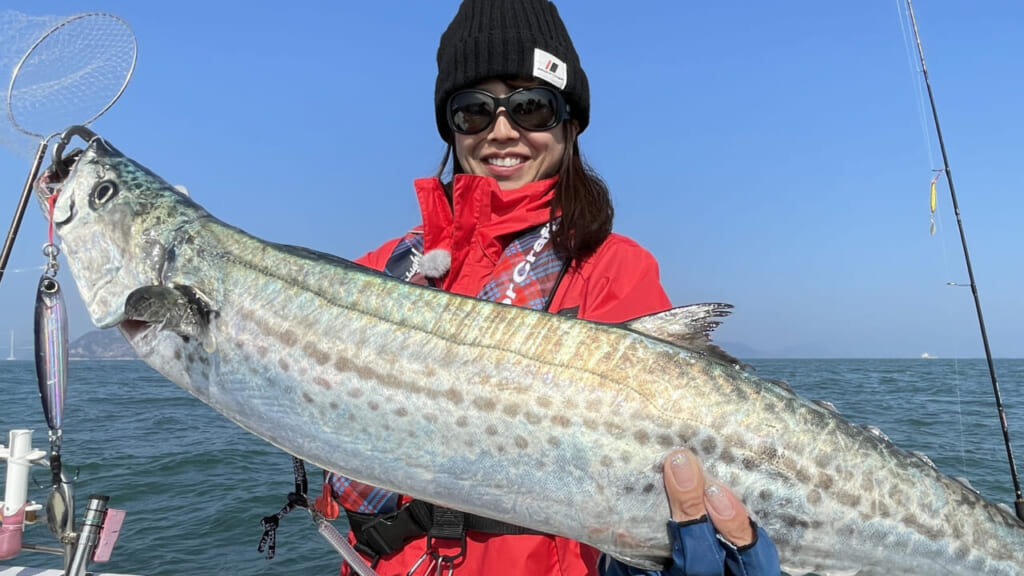 ちあきちゃんも、良型のサワラをキャッチ! ブレードSLJの集魚能力の高さを実証!