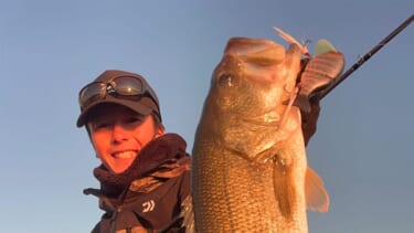 好機を逃さず、60cmのスズキをキャッチ!