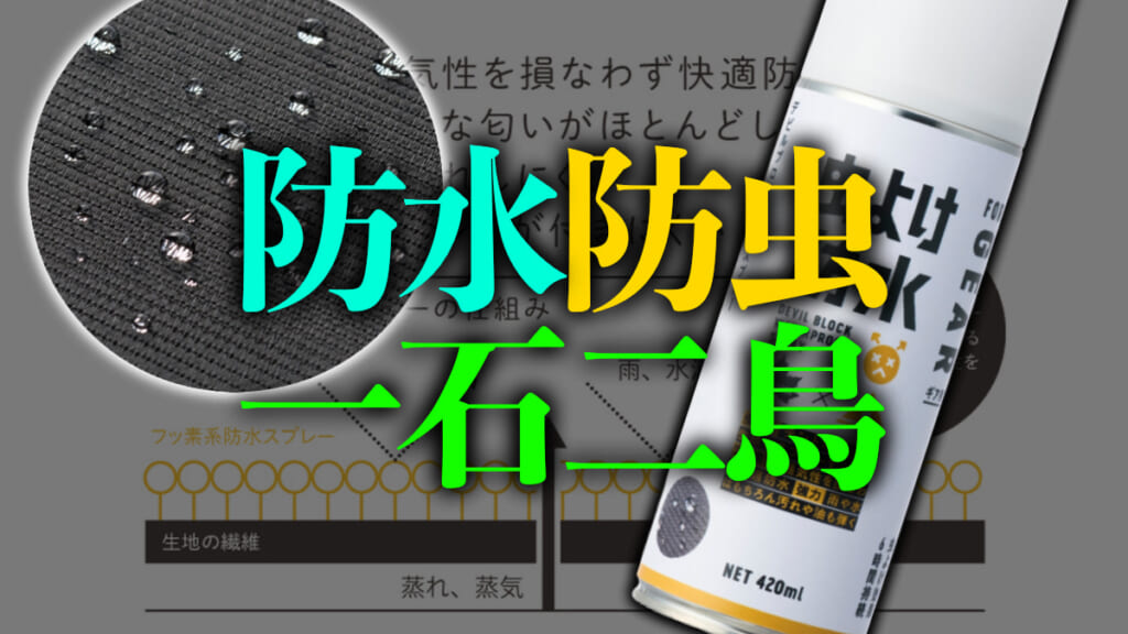 防水、撥水効果はもちろん防虫効果も実現した「デビルブロック防水スプレー」を、虫が気になるこれからのシーズンのアウトドアライフで、ぜひご活用ください!