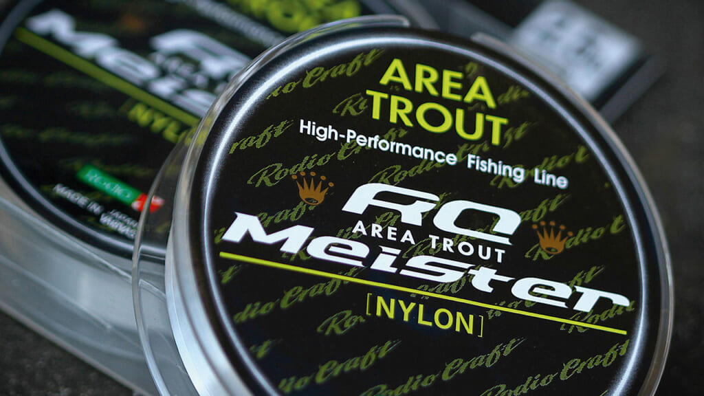 森田さんのベースラインは、スーパートラウトエリアマスターリミテッドSVG ナイロン(バリバス)と、RCマイスターナイロン(ロデオクラフト)の2タイプ。
