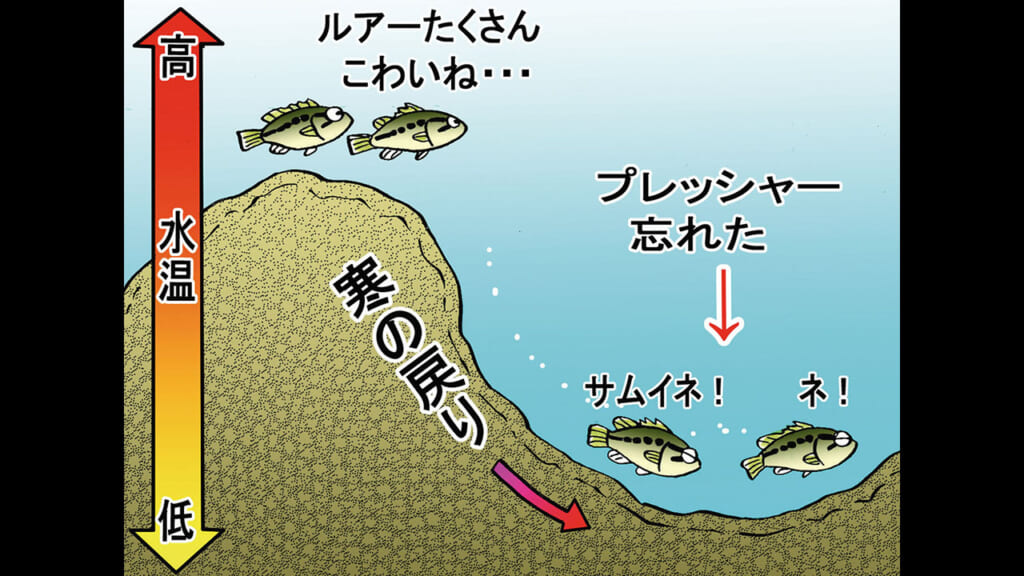 そういう意味でも、ある程度寒の戻りはあったほうが、魚が拠り所を必要とするし、ポジションが変わることで魚自体のプレッシャーが和らぐと思いますね」