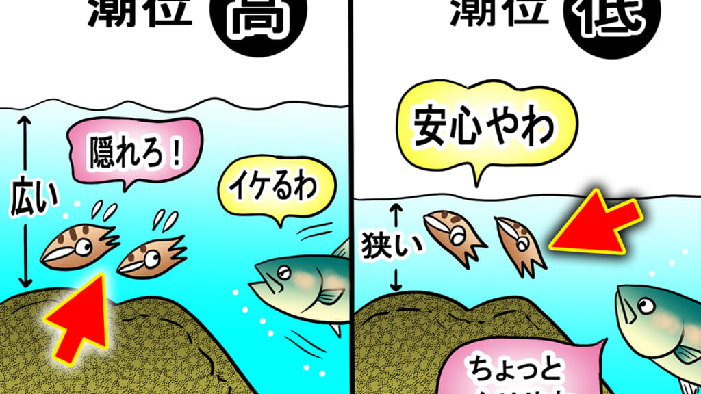 池内「干潮へと続く時間帯や潮位が低いときは天敵の青物が少ないため、安心してベイトを捕食しやすいので活性が上がりやすいのです」