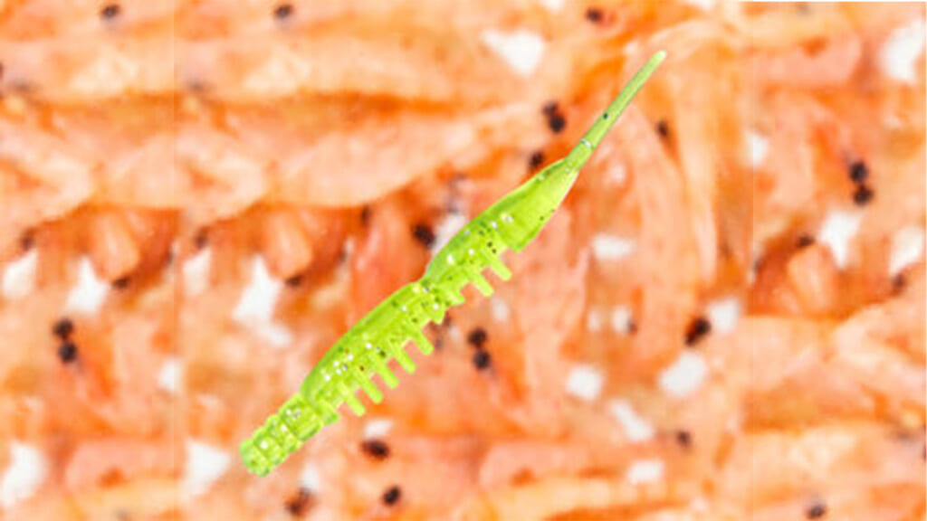 単に復活したわけではなく、マテリアルや形状をリニューアル。特徴であるピンテール状の触角と複数の腹肢が生み出すアクションと波動は多くのターゲットを魅了する。また、ボディ中央付近に設定されたくびれにより、頭部が折れ曲がりやすい設計。これにより、吸い込みバイトなどにも、しっかりとターゲットの口中に収まってくれる。
