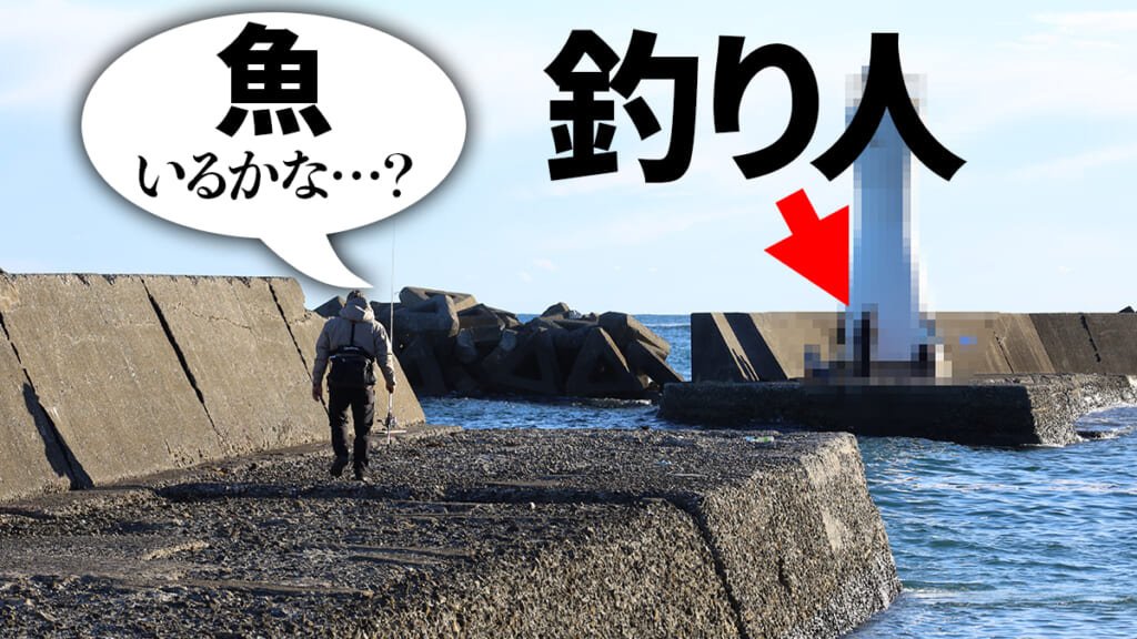 堤防の先端に釣り人の姿を発見した渡邉さん。