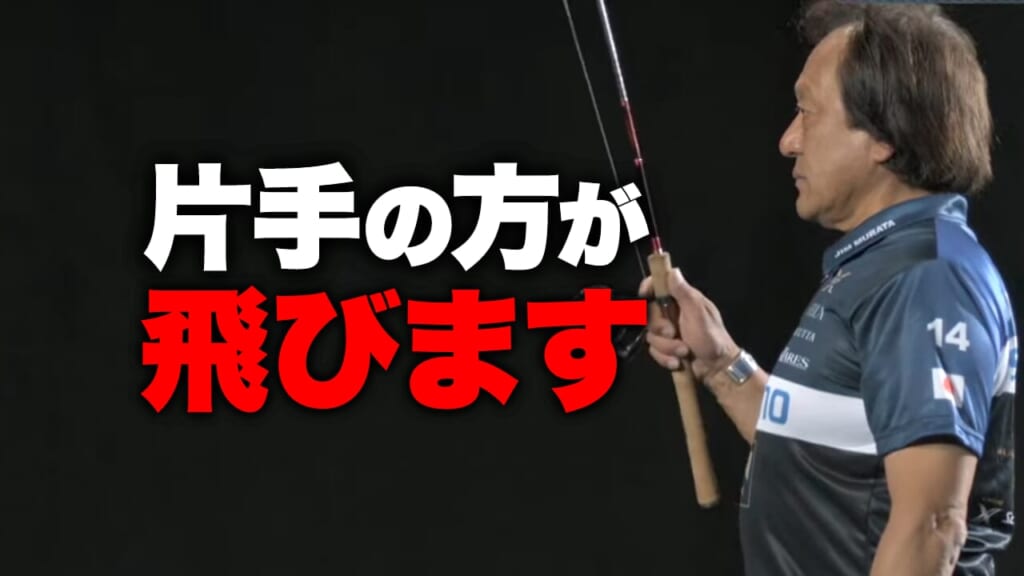 トラウトロッドのように軽くてキャスティングしやすいロッドを「どうしても両手で振ってしまう人がいる」と村田基さんはつぶやく。基本的にトラウトロッドを両手で振ると飛距離がでない。片手でロッドを扱うのに比べてロッドの振り幅が大きく違うためだ。