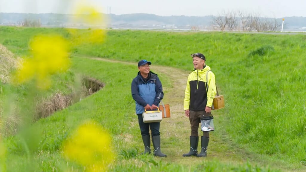 「ど、どこだ…?」草陰や護岸の縁で目を凝らす。息をするのも忘れるほどの緊張感。(2ページ目)
