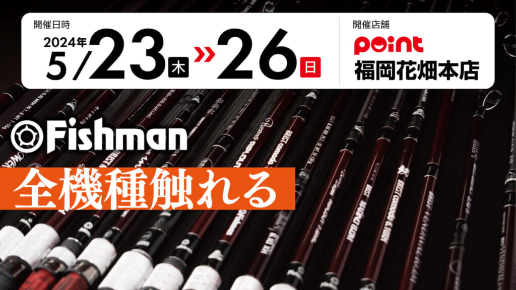 こだわりのハイクオリティベイトロッドを多数ラインナップするフィッシュマンが、2024年5月23日(木)〜26日(日)に、同社ロッド全アイテムの展示と、新機種の先行予約受注会を実施する。場所は、ポイントの福岡花畑本店となる。