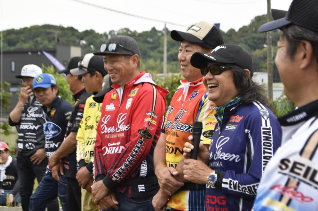 今回のイベントは使用するロッドのメーカーに指定があるわけではないが、ほとんどの参加者がエバーグリーンのロッドを持参。