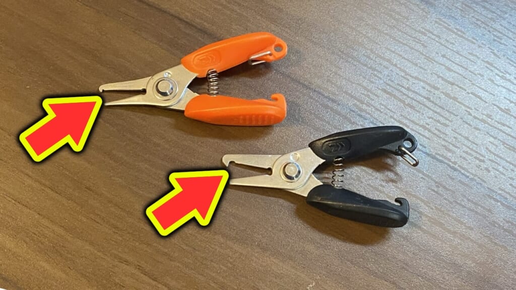 小さくてもピンセットタイプと違いプライヤー形状になっているため、指先に力が入りやすい。さらに爪部分に小さなスリットがあり、スプリットリングがすっぽり収まるため、開口部が左右に暴れたりせずスムーズなフック交換が可能だ。本当に買ってよかったと思っている。