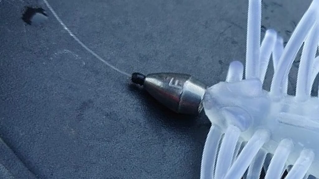 しかしエラストマー系は別。エラストマー系は浮力があるので、下に向かうシンカーの動きと対称的な動きとなり、同じテキサスリグでも動きがめちゃくちゃ良くなるのです!