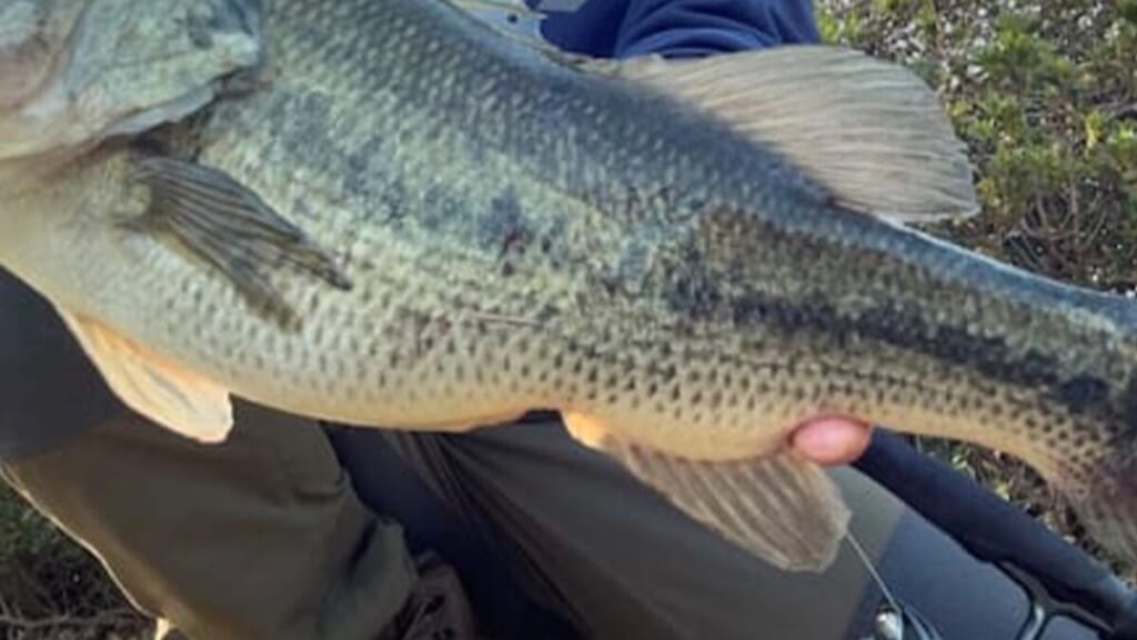 バスプロの佐々木さんが釣ったバス。他の個体とは違い、お腹がボコボコしているのが特徴的だ。その要因はもしかしたらボラを食べているからかもと佐々木さんは推察。