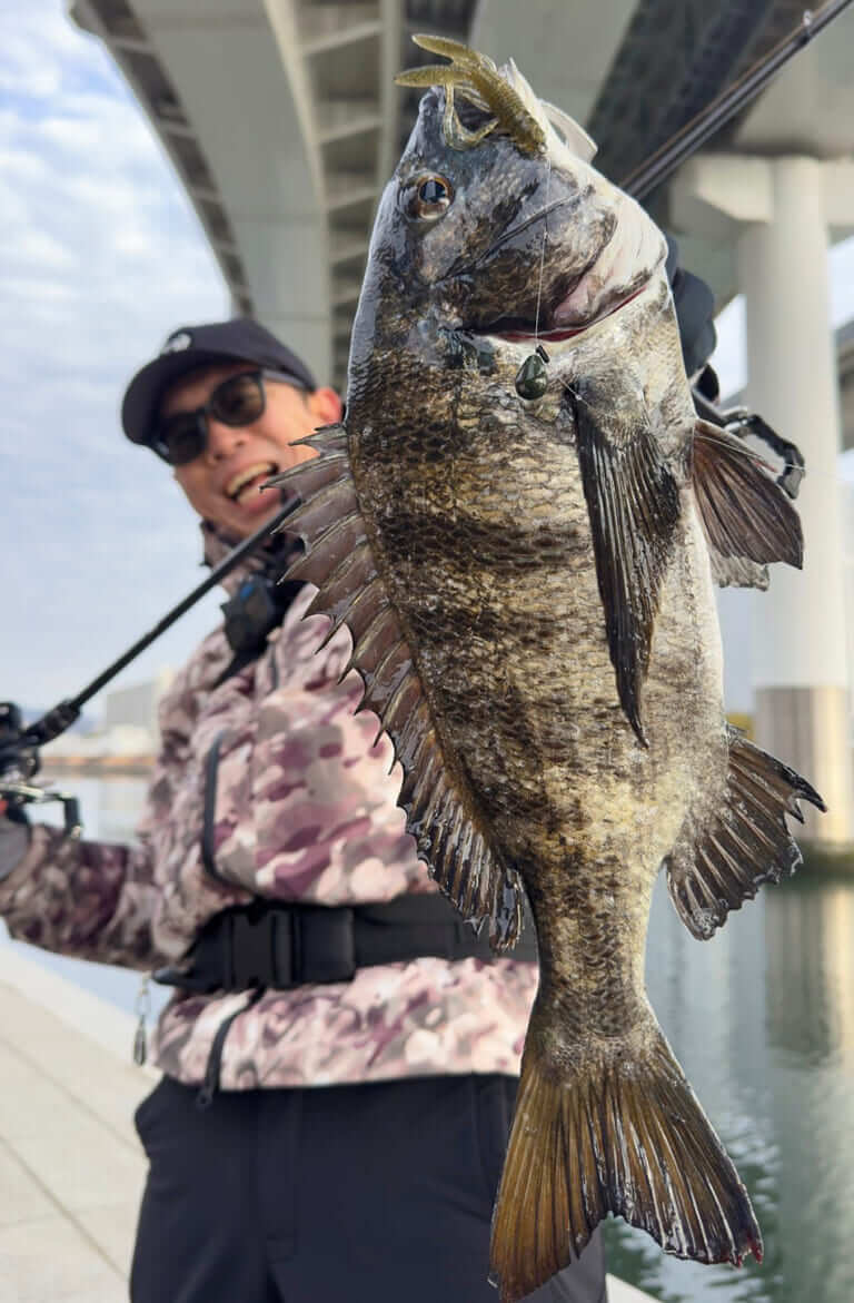 前夜の強い北風で水がクリアアップし、昨日までシャローでトップに反応していた大型クロダイが姿を消す難しいコンディションに。プリスポーンとアフタースポーンの個体が混在し、攻略が一筋縄ではいきませんでしたが、天下茶屋のチニングアンテナショップ「FLAGSHIP」の遠山船長と、大阪一のチヌ釣果を誇る遊漁船「エリンギ」の尾後隼人船長の完璧なサポートのおかげで、全員が釣りまくり!