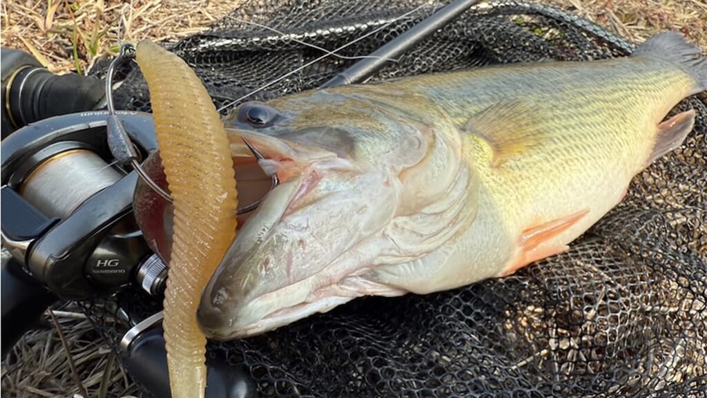 刺さりは言うまでもなくパーフェクトなフック。フルスイングと組み合わせることで、ボトム付近(水深2mから3mまで)をゆっくりきっちり巻くことができます。産気付くタイミングの4月に巻いて釣りたいときや、巻かないと魚を拾えない時にぜひ試してもらえたらと思います。