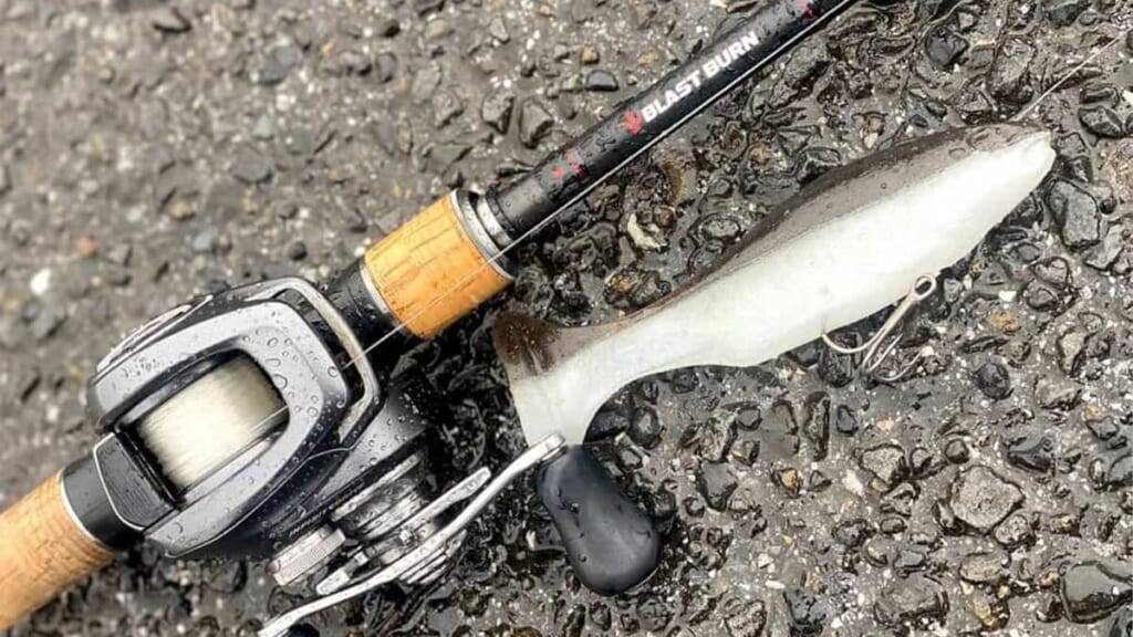 これにより、スイムベイトのアクションを最大限に活かせるのと、よりゆっくりとルアーをトレースすることができます。バスを掛けてからもフックがルアーボディに固定されていないので、バラシの軽減にも繋がります。