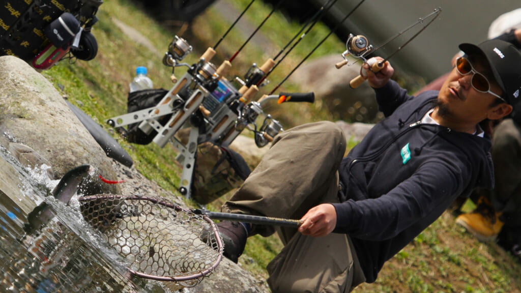 ここからは、中級者以上のアングラーに向けた、実践編のはなし。松本さんは具体的に、全国区のエリアトーナメントの最前線で、どのようにナイロンリーダーとフロロリーダーを使い分けているのか? 舞台は第24回トラウトキング選手権大会・エキスパートシリーズ。