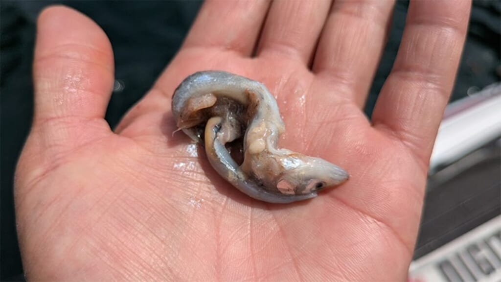 七色ダムは虫系とエビ、池原は稚鮎、琵琶湖のバスは何も食べていませんでしたね。西に来ると基本フロリダ系になりますが、フロリダ系の身体的特徴として「喉が太い」というものがあります。これはストマック調査用のパイプを入れてみた時に感じるのですが、ノーザン系とは明らかに異なります。