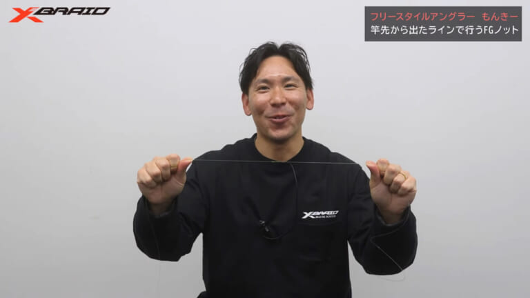 シーバス、クロダイ、ロックフィッシュ、アジングなど旬のターゲット追うフリースタイルアングラーのもんきーさんが“もんきー流”FGノットを実演。