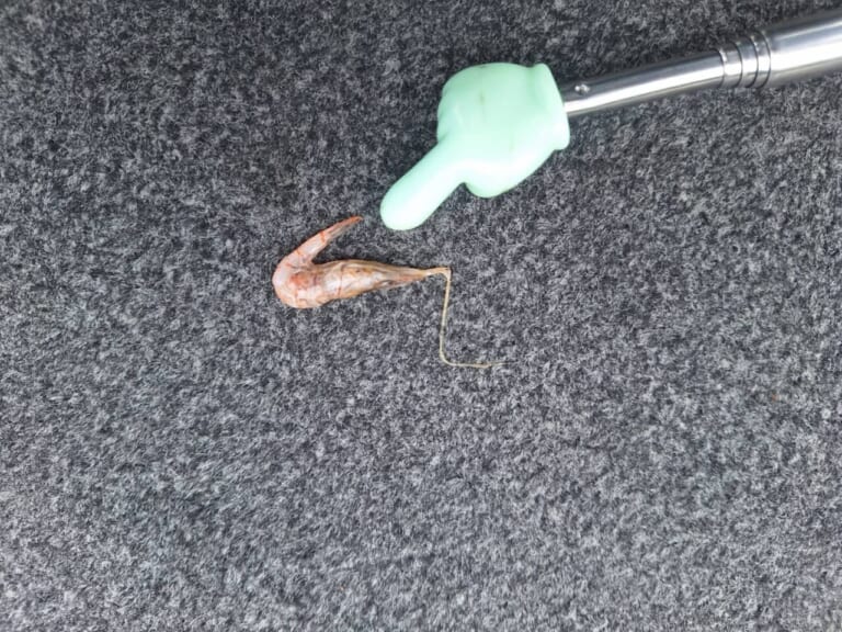 少しフォールスピードを上げたい時や、ボトムバンピングのスピードを上げたい時はハリーシュリンプのシッポをカットする事で、スピードの変化やアクション変化を変えて誘うこともあります!