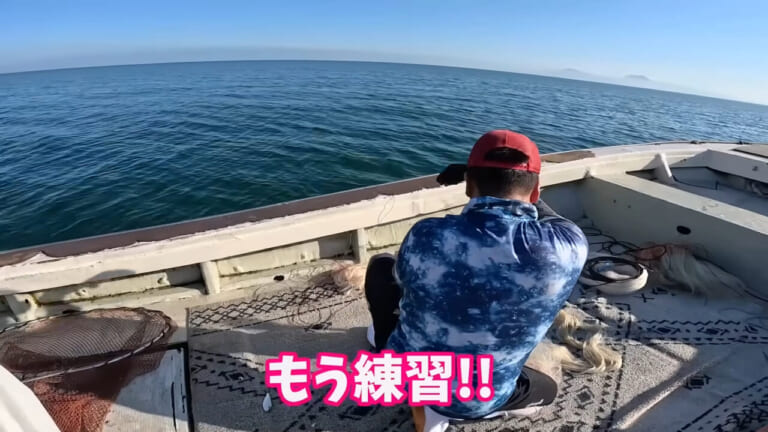 ところが飛ばしたドローンが不調。とくさんの手持ちGoProがちょうた君の投げ網をとらえる。網は美しく広がり、「どうだ、どうだ。入っと、入っと? ちょうた君、入っとよ、良かったね」ととくさんも大興奮。だが、船中からは「まだまだ」とのお言葉が。練習あるのみだ。