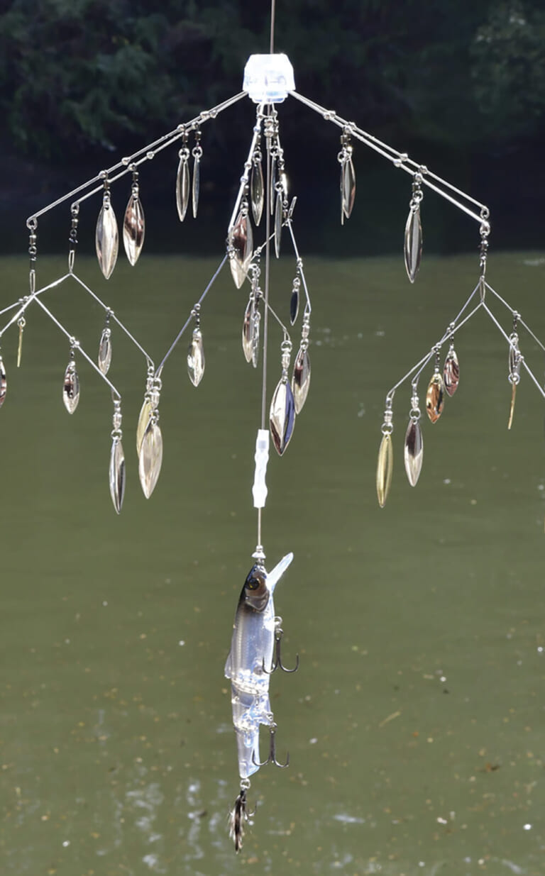 「デビル会のルールはブレードアラバマOKなので用意しました。ジーニアスのプラスブレードスクールで小魚の群れ感をさらに強めて、センターにはスリークマイキー90を装着しています。前日のプラではこれにだけバイトがありました(笑)」