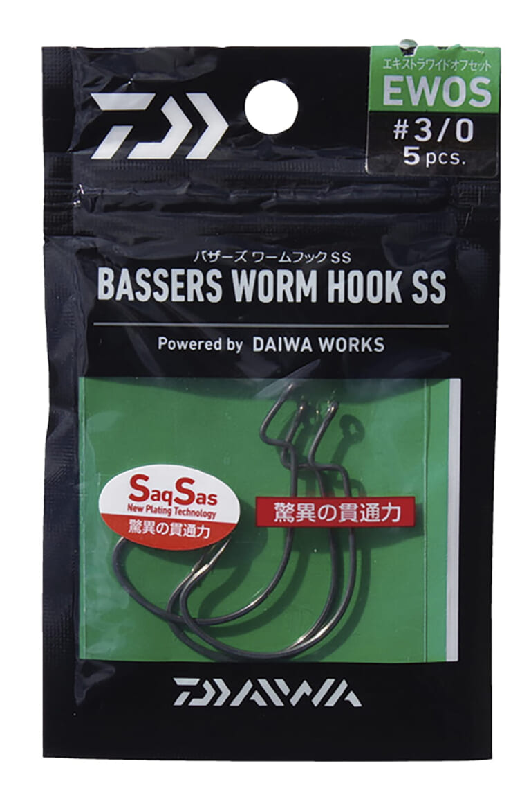 「クジャラを使うときはフックにこだわっています。使うのはDAIWAのバザーズワームフックSS(エキストラワイドオフセット)の#3/0ですね。針先の形状が独特でボディにピタッとフィットして根掛かりしにくいし、ゲイプがすごく深いので魚をしっかりと掛けられます。OVER31優勝の魚はクジャラの直リグで釣りました」