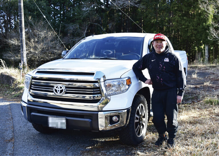 クルマも好きだという課長は、左ハンドルのタンドラ(トヨタ)を駆る。「昔から、バス釣りのクルマと言えばピックアップトラックのイメージがありました。実際に導入するとめっちゃ便利! パワーはあるし道具もたくさん載る。特にラゲッジと居室空間を分けられるのがいいですね。濡れたままの道具をそのまま載せても抵抗感がないです」