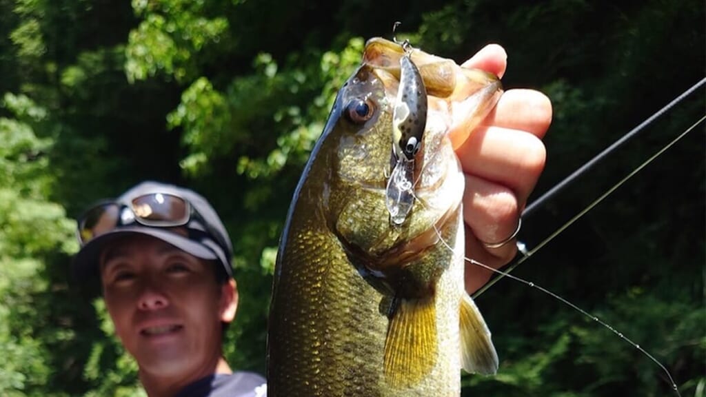 使い方は多岐に渡り、ジグストのようなイメージで見えるレンジをスイミングさせ食わせる使用法もあれば、ウッドチップの隙間に入れ込んで、そこでふわふわさせるイメージで誘うなど、マルチに使えます。ちなみに今回はスイミングでも、ウッドチップへのアプローチでも両方キャッチしました。サイズが良かったのはウッドチップへのアプローチでしたね!