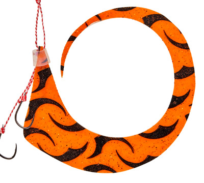 ネクタイは厚さ1mmの肉厚ビッグシングルカーリーを標準装備。艶めかしいアクションと力強い波動でマダイを誘う。