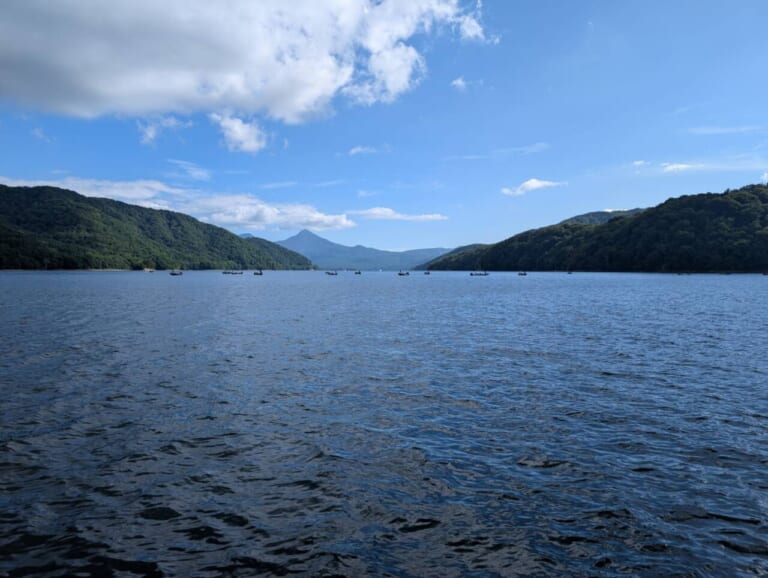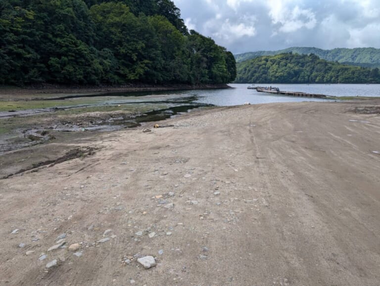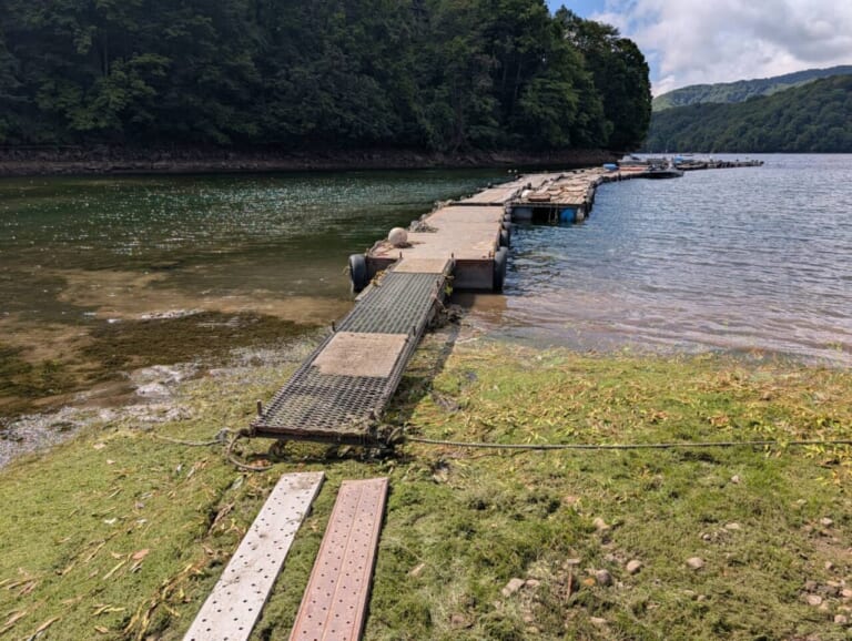 例年であればラージはもっと季節が進行(=秋)したタイミングで多く見られるが、日を追うごとに低くなる水位といい、今年の桧原湖は何かが違うようだ。
