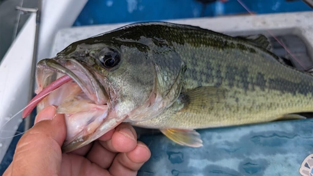 ブレードの回転やトラブルのテストは進められたものの予想外の展開。なんと午前中はノーバイトノーフィッシュ。バスは気まぐれなので、テストも思うようにいかないこともあったりします・・・。このままだと凸る。そう感じ、一旦下船。車からセミ系とワーム、ジグを持参。するとすぐに反応アリ!