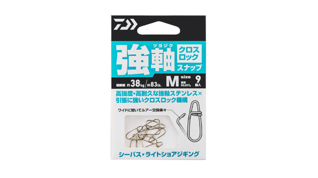 高強度・高耐久が売りの「強軸(つよじく)スナップ」に、ルアー交換時などの着脱をスムーズにするクロスロック仕様が登場した。
