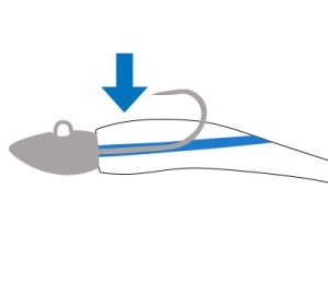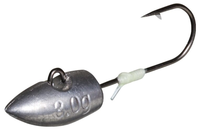 そのスパークにジャストフィットするジグヘッドとしてリリースされているのが『A.W.ロックヘッド』で、水流抵抗を効率的に後方へと流してくれる砲弾型のヘッド形状を採用。軽い力でロッドをアオるだけでリズミカルに幅広ダートを展開して、ターゲットに力強くアピール。タダ巻きにも対応し、ブレのないキレイなI字アクションのスイミングを見せてくれる。