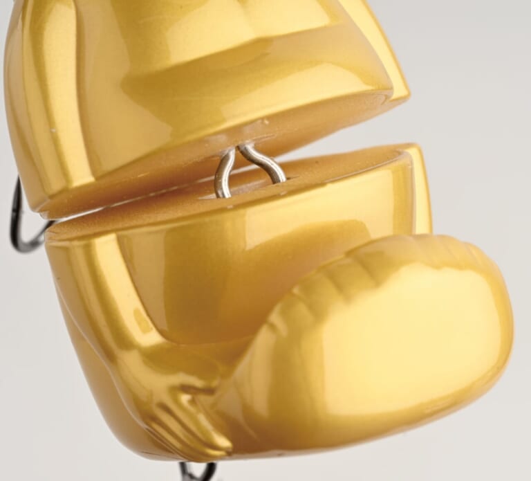 動きの自由度が高いシングルジョイントでビリケンさんの胴体を接続。フラット面同士が不規則なアクションで接触することで、魅惑的なサウンドを発生する。ビリケンさんを象徴する足部分は鉤爪状になっており、空気をはらみつつ水を攪拌。このボディデザインだからこそのウェイクアクションを発生する。