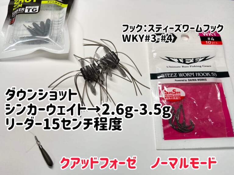 さて、ここからはクアッドフォーゼ解体新書と題して、詳しくリグや使用するシンカー等のウェイトを紹介していければと思います。