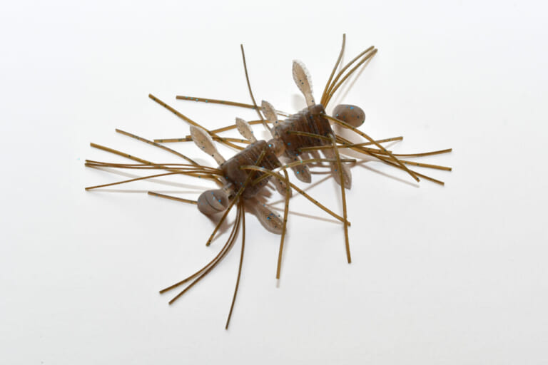 先ほど「エラストマーにラバーを挿すと反応が変わる」という話に触れましたが、ラバーの挿し方や本数、太さから長さに至るまでで、実際のところ魚の反応は変わります。ラバーの挿し方、本数、太さ、長さを決める際はレンタルボートで三島湖、豊英ダムでライブソナーを活用してボート上で様々なラバーのパターンを試し、最も魚の反応の良いラバーパターンを決めました。完全にボート上でエラストマーラバー挿しおじさんと化していたことは言うまでもありません(笑)。