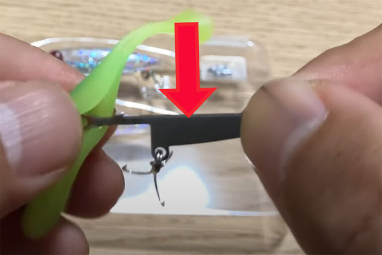 さらにスティルシャッドは、パッケージに付属するネイルシンカーによってウエイトの調節が可能。付属のネイルシンカーを、シンカーホールに取り付けることで、レンジを下げたり、アクションを大きくしたりと、誘いの幅が増える。