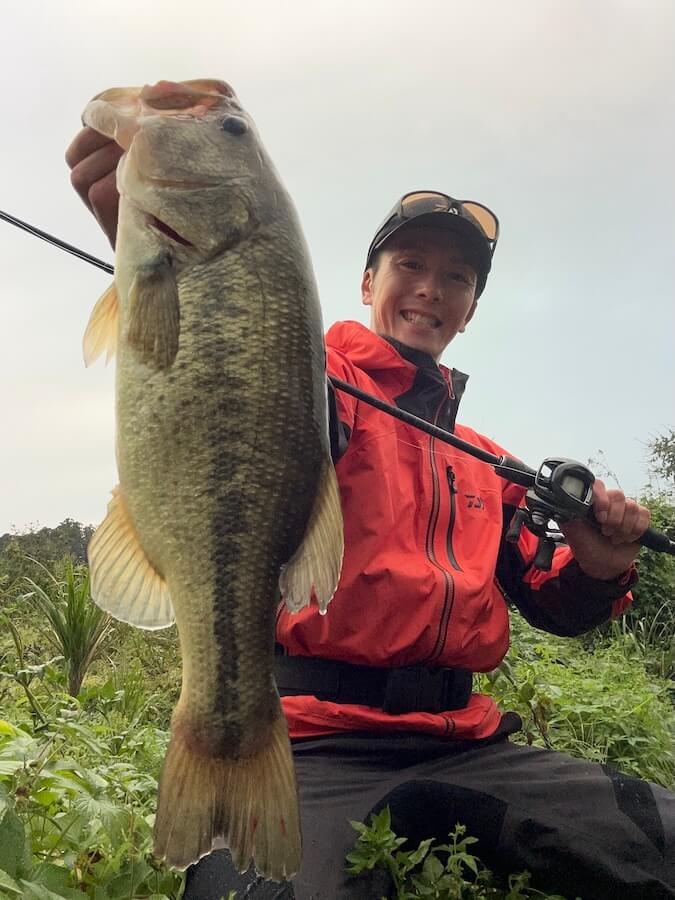 この日やって感じた傾向としては、本湖、流入河川共にシャローにバスはいるけど浅いところにいるけど浅いところのバスはMAXでも40前後で、それ以上のサイズになるとある程度水深のあるスポットじゃないといないという印象でした。