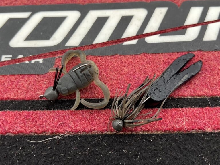 ヒットルアーのクーパーフロッグ(3.5gジグヘッド)とコスモ1.8g+BUダディJr.。