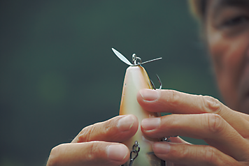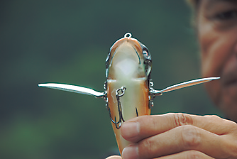 ワイドかつ肉厚の全長110ミリで自重2オンスクラス。水面の水を力強く掻き分けつつスローなアピールで誘い、初日6本&2日目1本。晴天時が多かった初日に猛打を魅せてくれた。