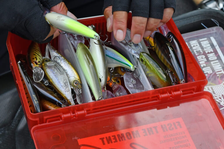 あらゆるシチュエーションに対応できるルアーをラインナップ。常に自分の納得できるルアーを投げられる備えも重要だ。