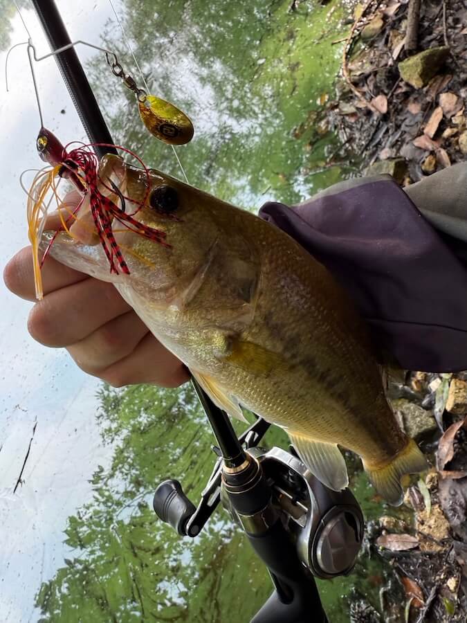 秋本番のため池で遊ぶにはドンピシャのコンパクトスピナーベイト。もちろんデカいサイズも引っ張れるけど…ため池アベレージサイズに遊んでもらう展開にもGOODです。