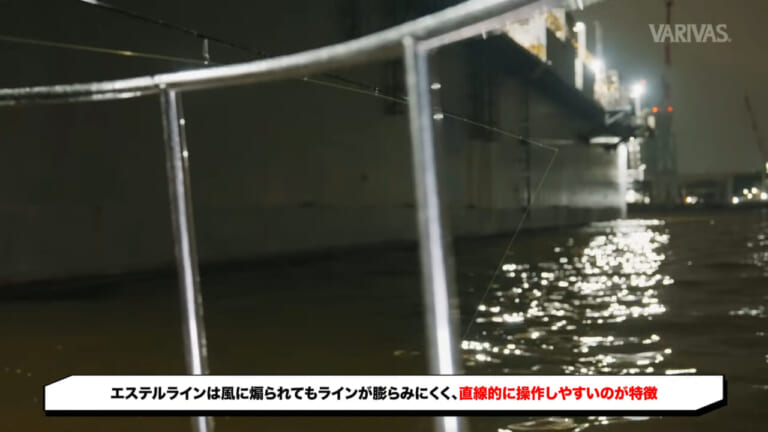池上「風が吹いてもエステルラインはPEラインのようにラインがふくらまずに直線的に入りやすい。アタリがとりやすいし、ジグヘッドの操作性も上がります」